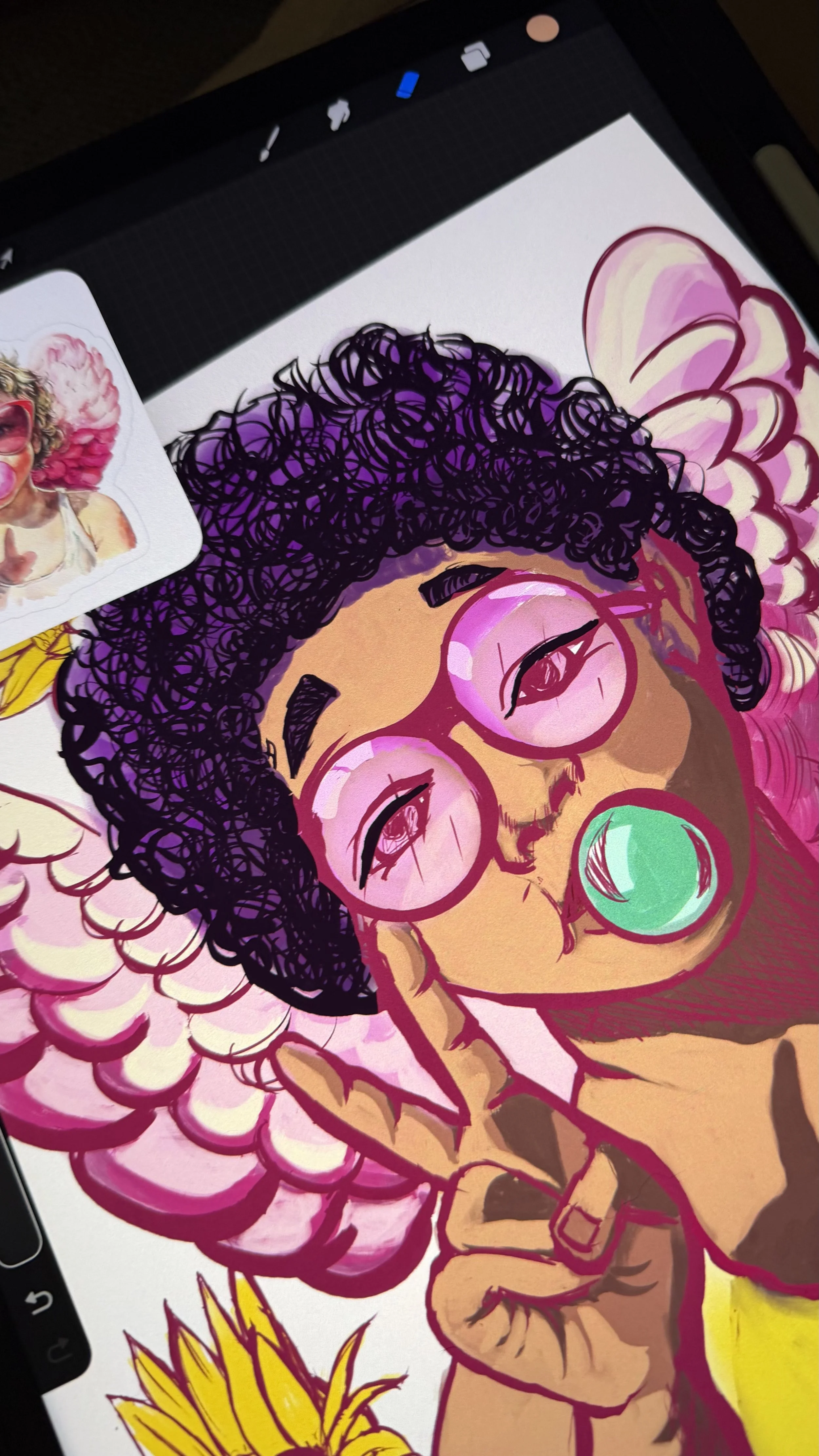 Two more pieces are already beginning to take shape in this series. One features an angel running from the noise so she can gather her thoughts and report her message clearly. Another centers an angel who crafts assignments for the others, helping guide what they should be watching for.